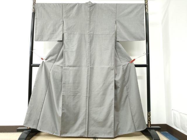 平和屋着物 江戸小紋 紬地 万筋 薄墨色×墨色 正絹 yc