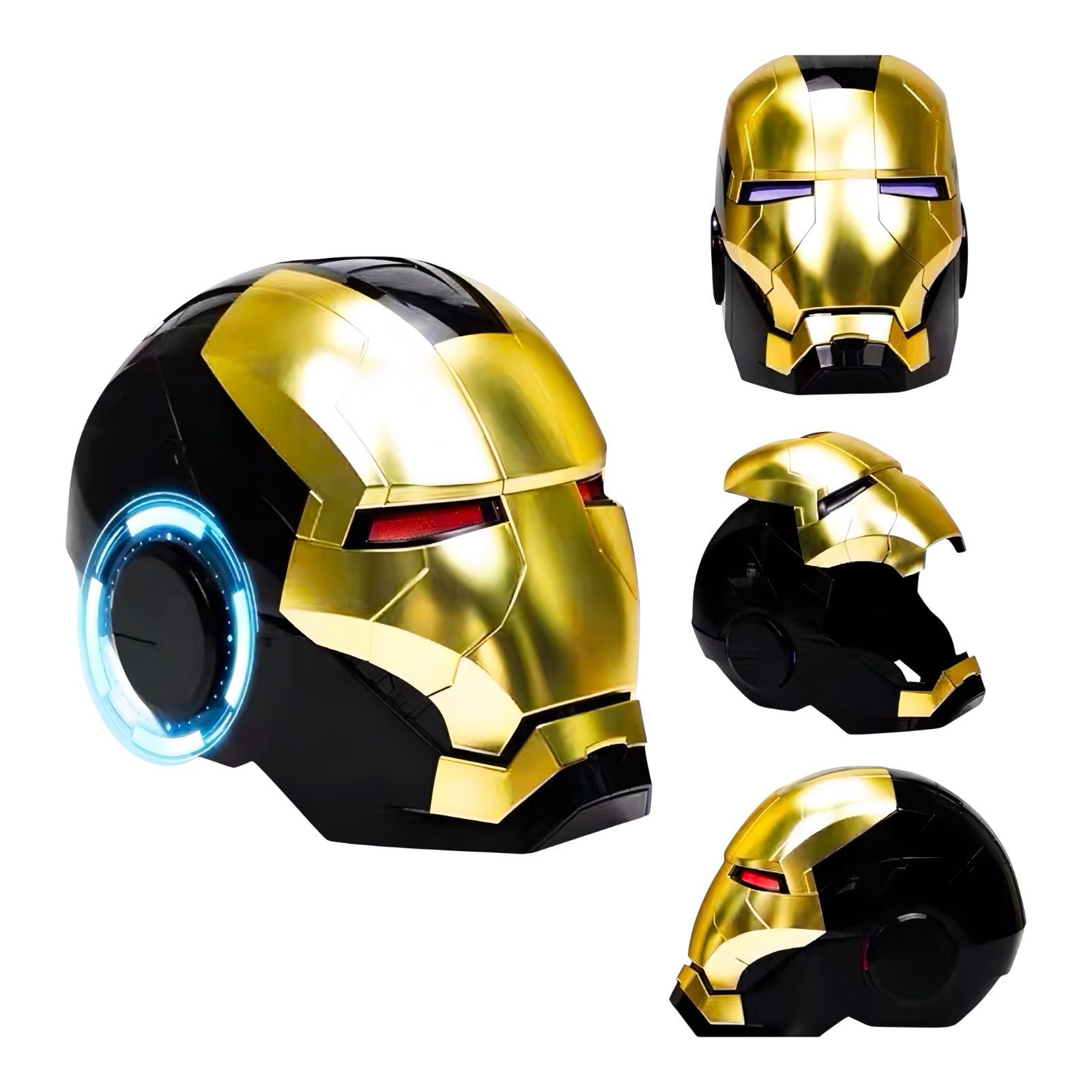 アイアンマン リアルマスク ゴールドブラック メット 等身大 マーベル トニー スターク LED発光 自動作動 コスプレ 仮装 インテリア ironman