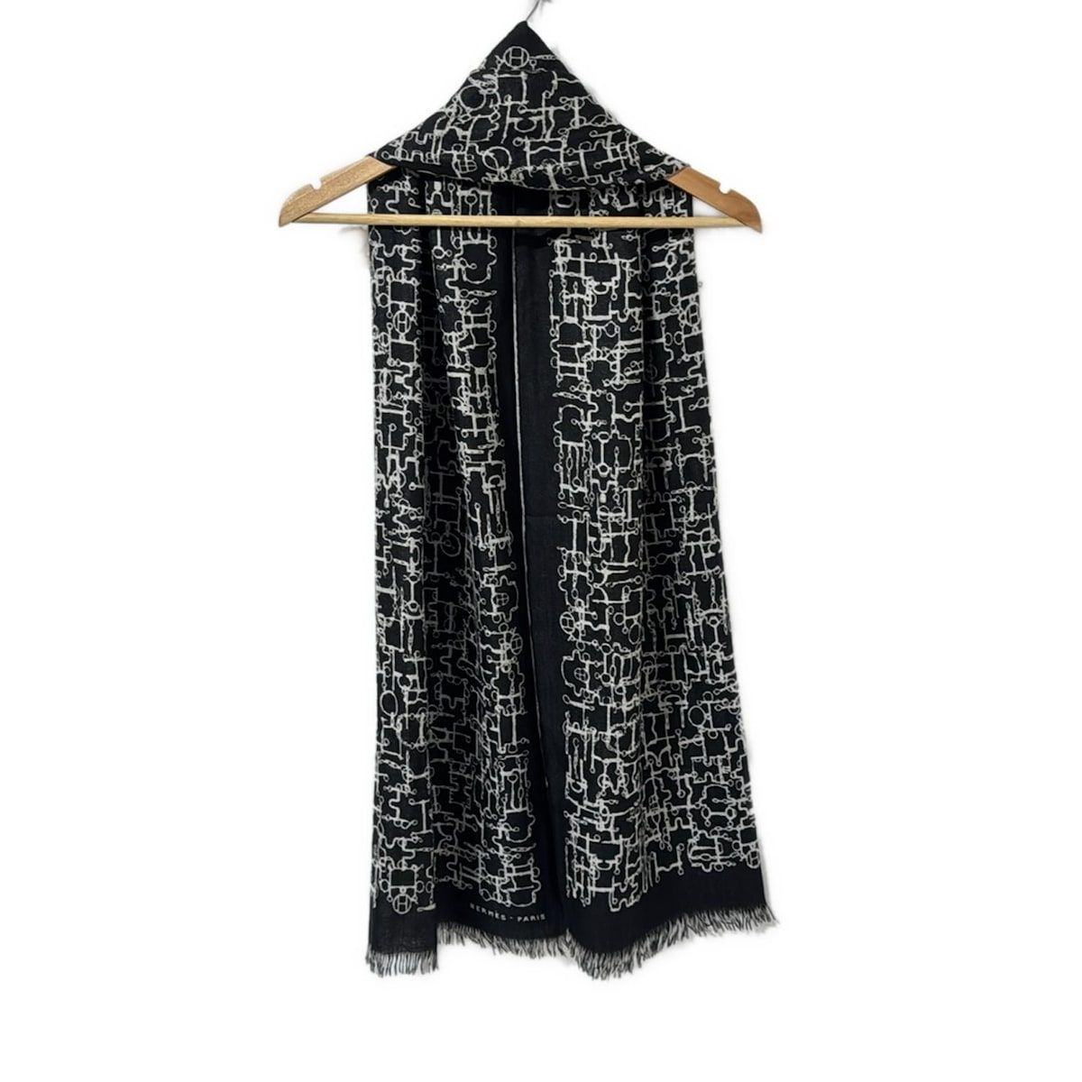 HERMES エルメス マフラー - 黒×グレー カシミヤ シルク