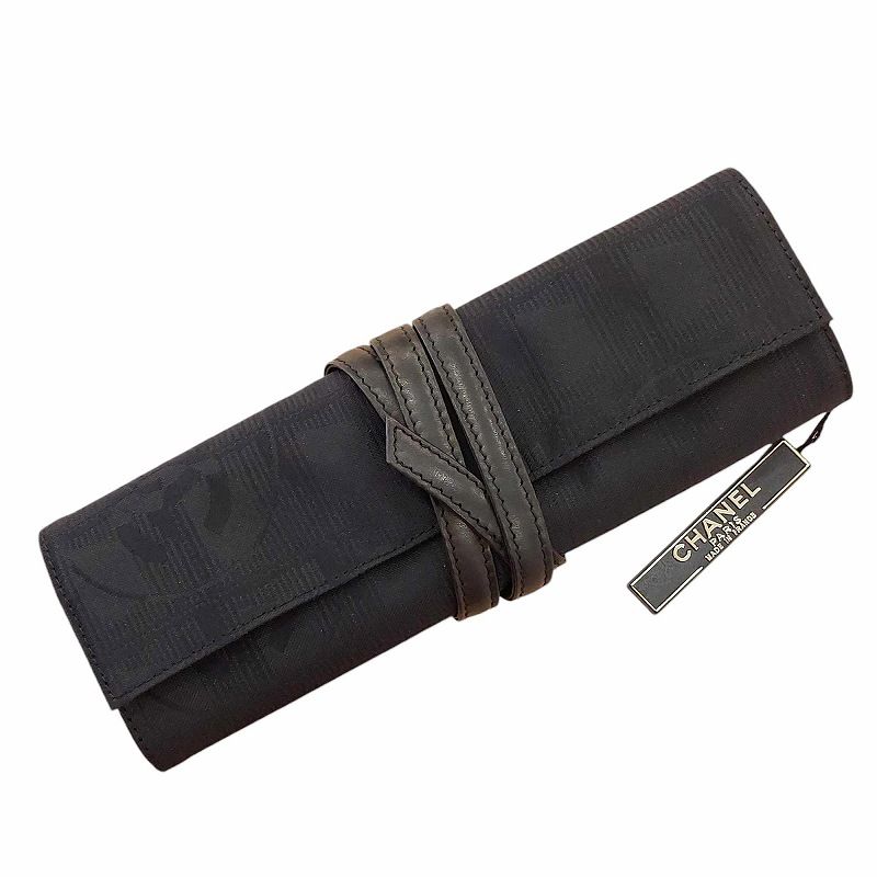 シャネル CHANEL ニュートラベルライン ジュエリーケース ケース ポーチ 小物入れ ジャガード 黒 ブラック 0829