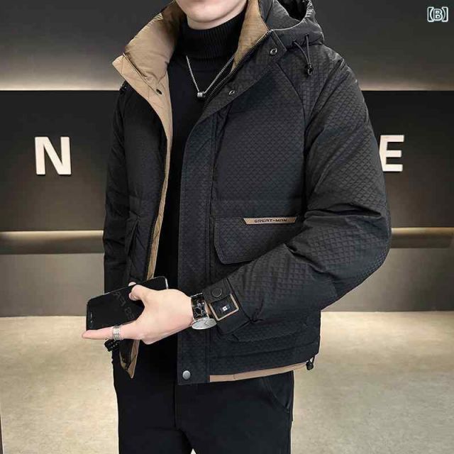 商品名:秋冬 コーデ メンズ 服 シンプル ファッション オシャレ 大人 かっこいい 大きいサイズ ストリート 紳士服 カラー ダウン ジャケット 冬 ハイエンド フード付き 防寒 服 厚手