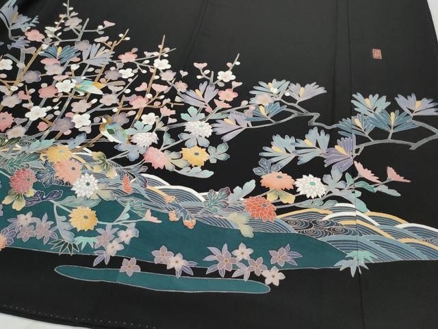 平和屋着物 豪華黒留袖 友禅 作家物 立波枝花鳥文 正絹 vf