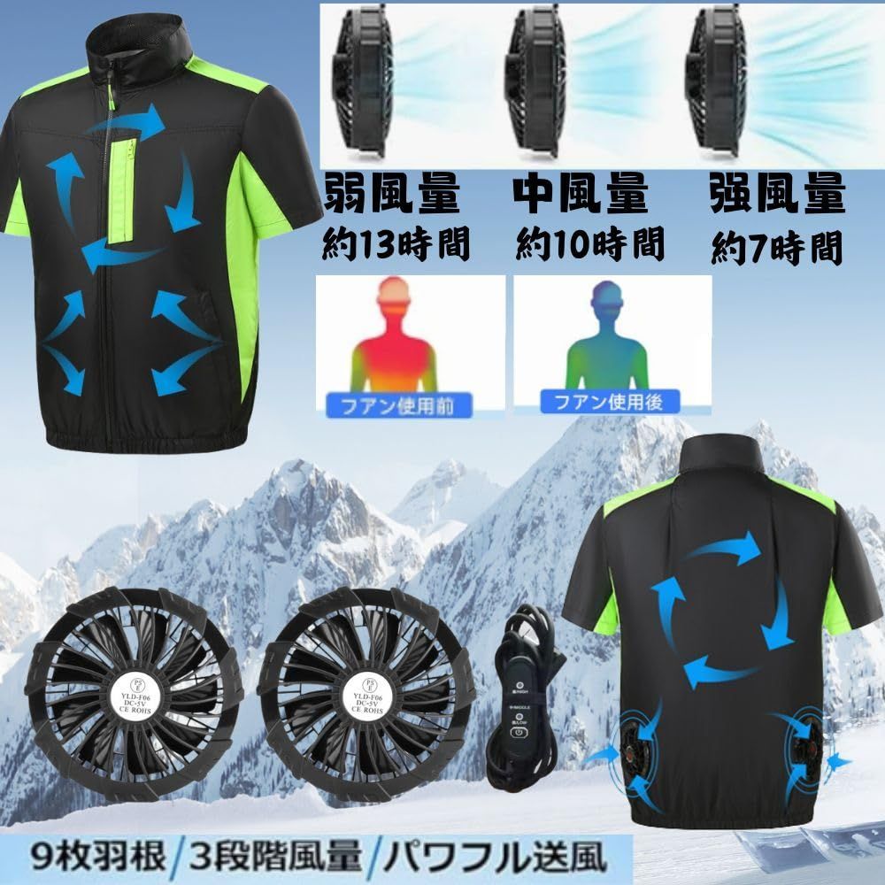 【30000mAhバッテリー搭載】には30000mAH超大容量のバッテリーも付き、薄い大型ファン使用、扇風服の左右に付いファンで取り込まれた、強くて持続な大風力は服内で空気をすばやく循環させ、汗を取り除き、乾いた状態に保つことができます。エアコン使用できない場所や屋外などの場合でも、体を涼しく快適に保ちます。より大きい風量が出るが、より静かです。