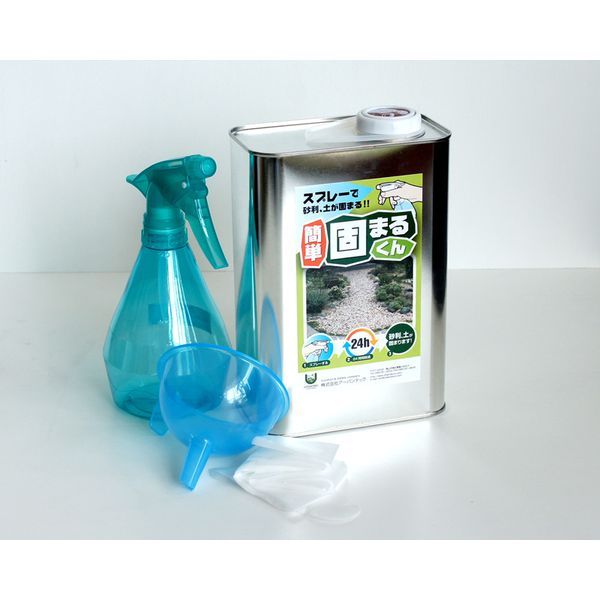 ●スプレーでかけると砕石や土の表面を固めることができます。通常24時間で乾きます。 (寒い季節や水分が多いと24時間以上かかります。)