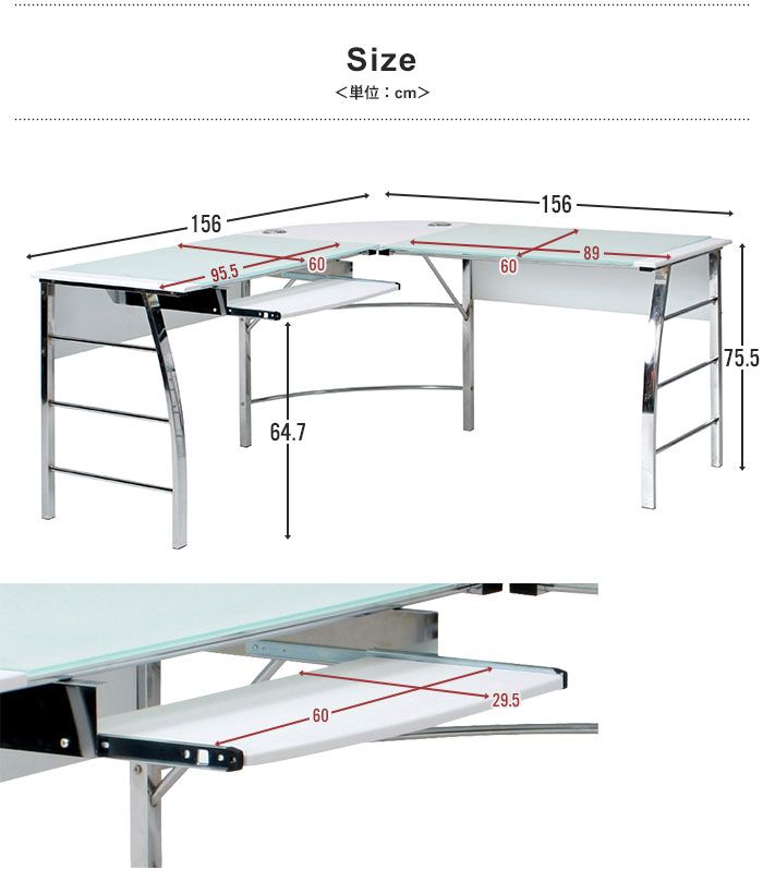デスク パソコンデスク L字 ガラス PCデスク L型 ホワイト ワークデスク オフィスデスク ガラスデスク 学習デスク 学習机 パソコン机 勉強机 白 書斎 机 つくえ シンプル モダン おしゃれ 仕事 作業台 効率 コーナー シス
